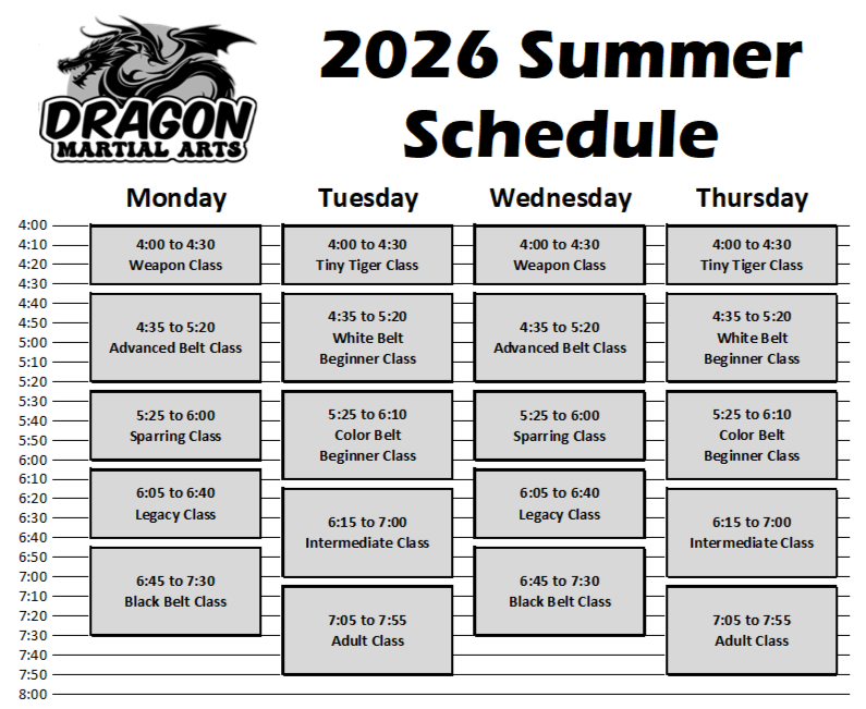 Special Note: When a storm is approaching, we will change this section with the date to make the final determination. We do not follow Public School closures. More so, we will also send out an email blast, so be sure to check for Dragon Emails in your Spam folder. However, if you ever feel that it is not safe for you to travel to the school, then please stay home and stay safe!